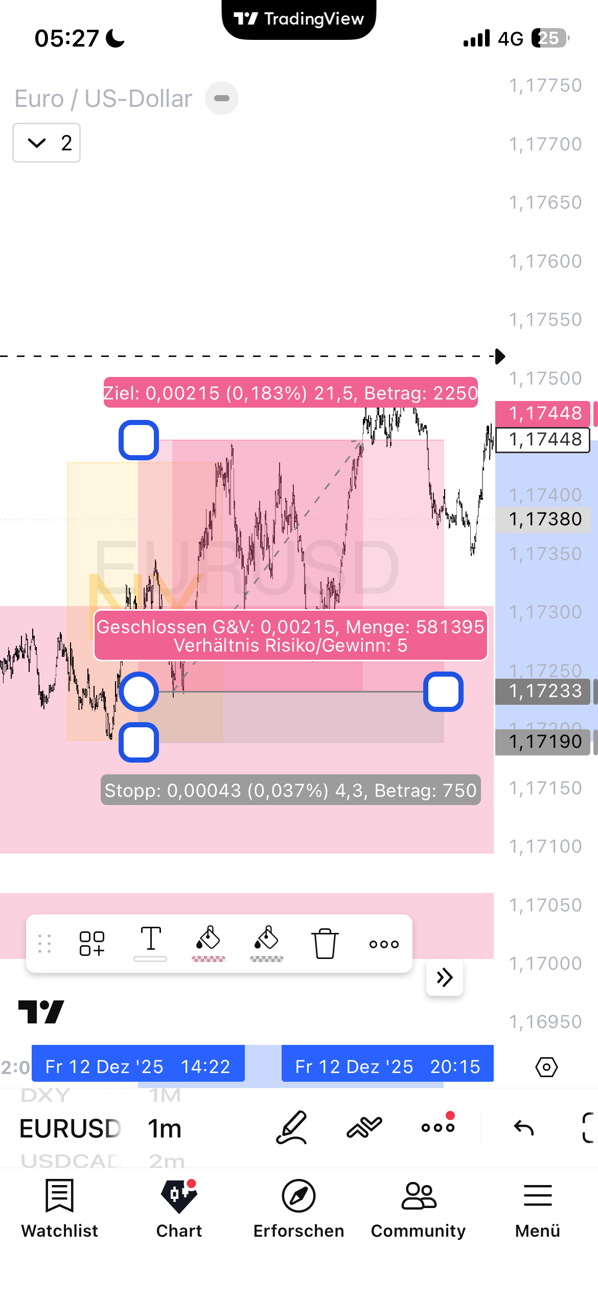 Der Markt hat exakt in der Zone zur NY Session "richtig" reagiert, und ging mit 1:5 in den TP.